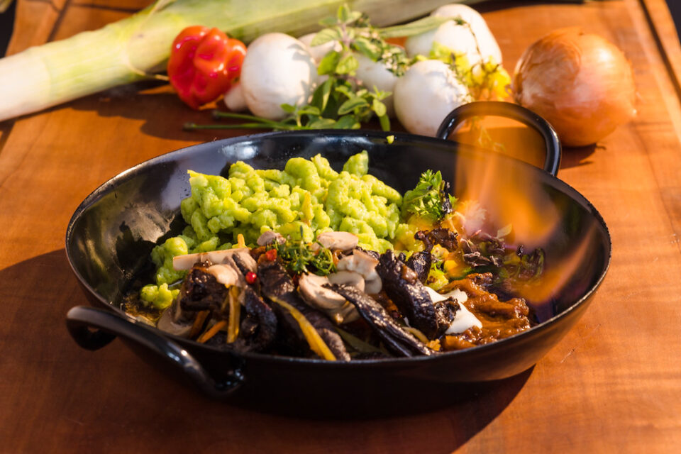 Als Beilage empfehlen wir Spätzle – je nach Saison kann man variieren und zum Beispiel auch einmal Bärlauchspätzle machen.